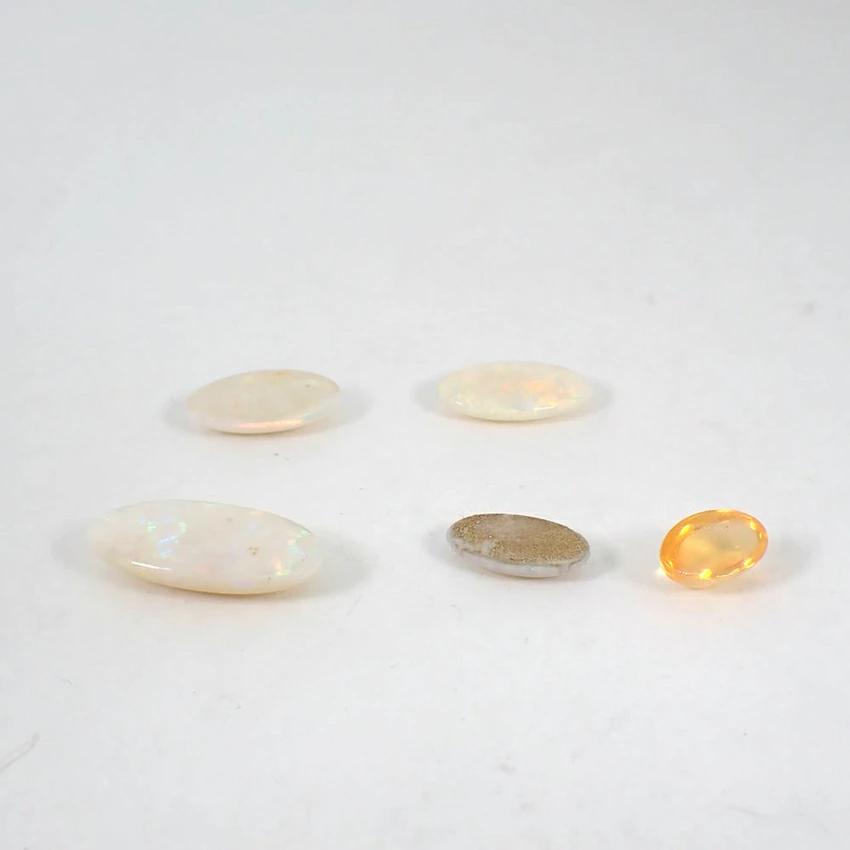 Product DetailsProduct Rank: AMaterial: LooseProduct DetailsWhite Opal: Approx. 15.2mm x 9.5mm x 2.8mmWhite Opal: Approx. 15.0mm x 9.8mm x 3.7mmWhite Opal: Approx. 20.6mm x 9.7mm x 4.9mmOpal: Approx. 12.0mm x 7.4mm x 2.8mmFire Opal: Approx. 9.4mm x 6.0mm x 4.4mmThese are five types of opal with beautiful colors.Product Rank: [N] New or equivalent, in excellent condition with no defects. [S] Almost flawless and in good condition. [A] Lightly used. [B] Signs of use. [C] Very heavy wear, obvious damage, or repair required. ______________________________________Condition: Used