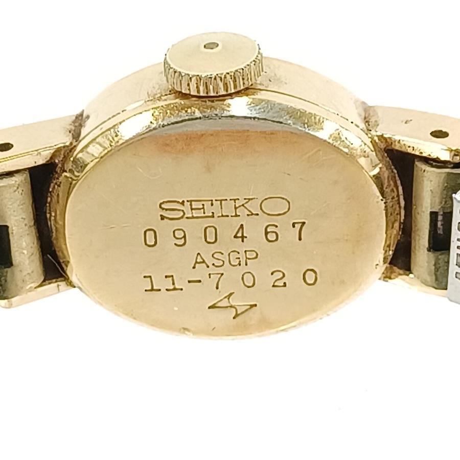 The watch's back case is marked with ASGP, which stands for "Authentic Seiko Gold Plated." This signifies a high-quality gold plating, adding to the watch's vintage appeal and value.