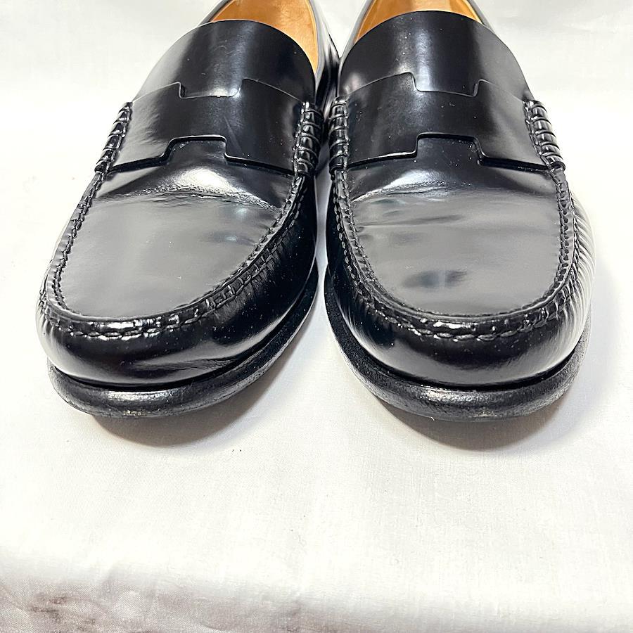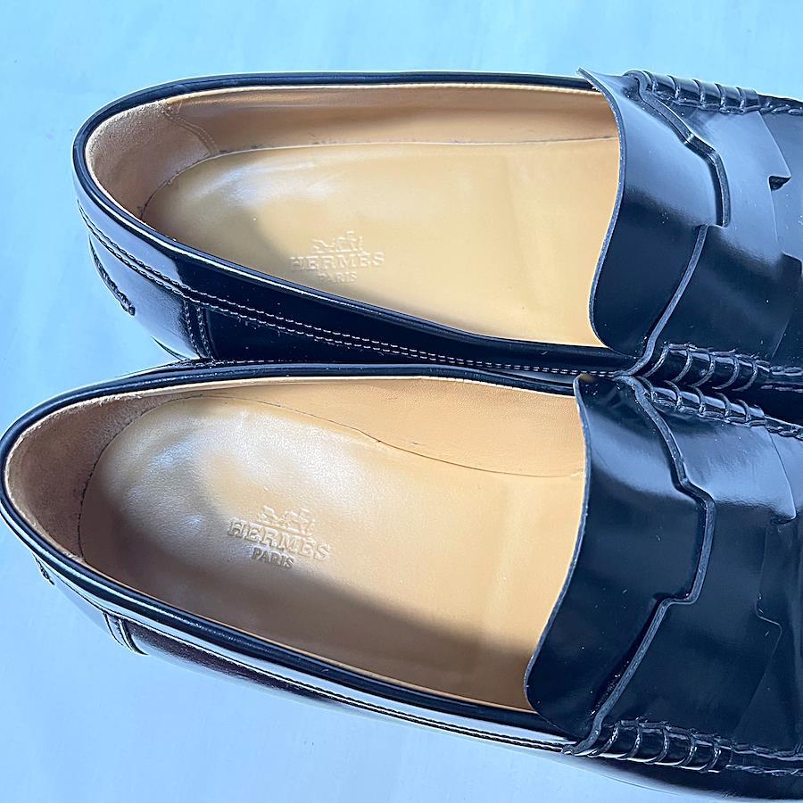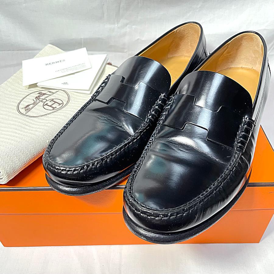【ブランド】HERMES エルメス ケネディ【品名】ローファー モカシン【対象】メンズ【サイズ】42 26.5cm相当【実寸(cm)】アウトソール全長28.5cm、ワイズ9.7cm、*多少の誤差はご容赦ください【素材】レザー【原産国】イタリア【カラー】ブラック【商品状態】つま先とサイドにややスレあり。当店では目立たないものと判断いたしました。箱にやや小傷等あり。中古品につき軽微な傷や汚れなどはご容赦ください。【管理番号】TJ8【付属品】箱、保存袋等、写真に掲載しているもの【備考】-
