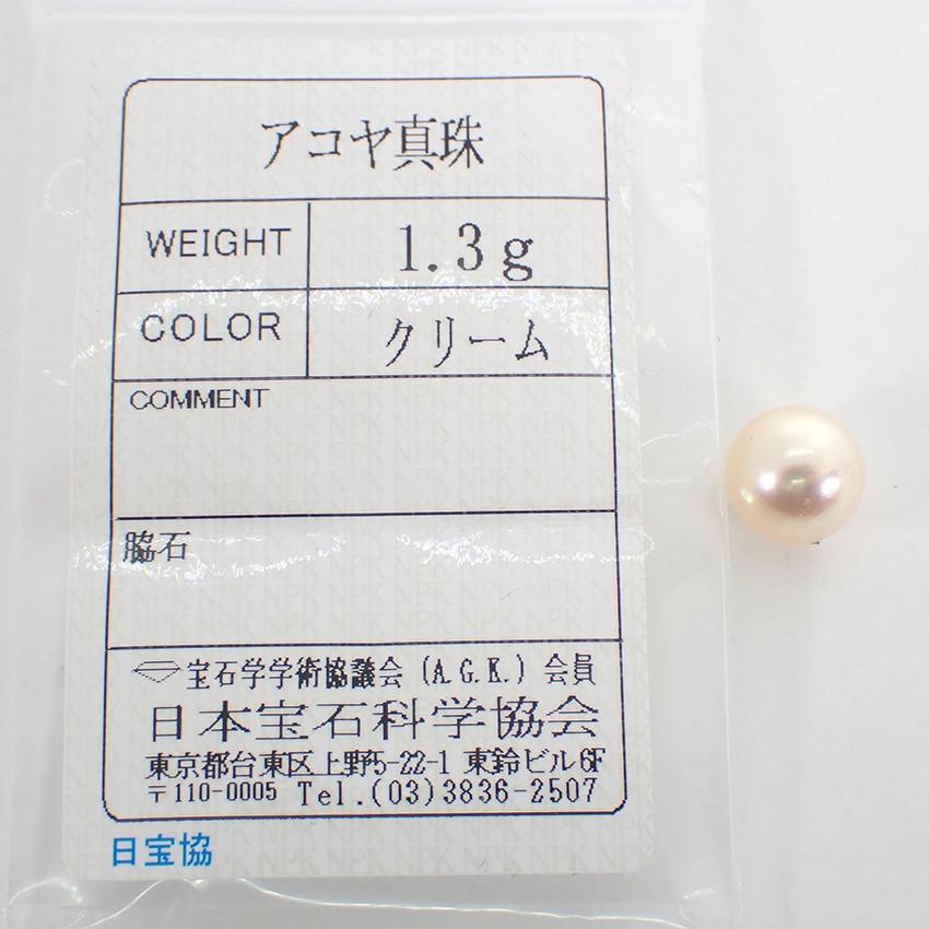 Product DetailsProduct Rank: AMaterial: Akoya PearlColor: CreamTurquoise: Approx. 9.7mm x 9.7mm x 9.8mm / Approx. 1.3gProduct DetailsThis pearl has a beautiful color. Comes with a Japan Gemological Association sorting.