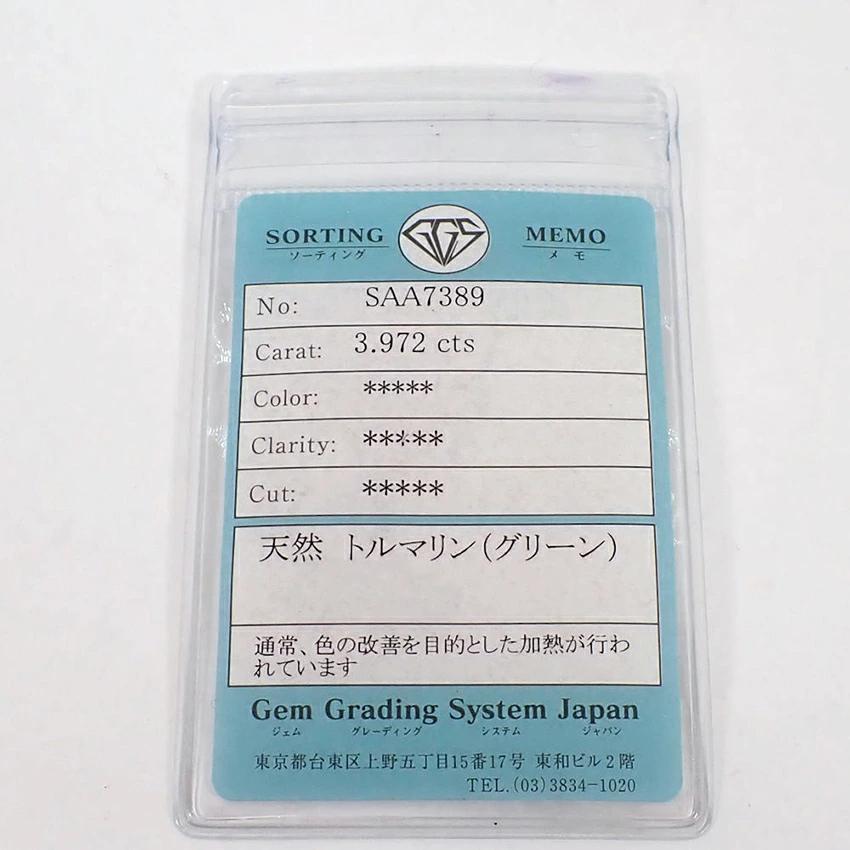 Tourmaline: Approx. 8.4mm x 8.1mm x 6.0mmCarat Weight: 3.972ctAccessories: GGSJ SortingThis is a natural tourmaline with a beautiful green glow.Product Rank: [N] New or equivalent, in excellent condition with no defects. [S] Almost flawless and in excellent condition. [A] Lightly used. [B] Signs of use. [C] Signs of heavy use, obvious damage, or repair required. ________________________Condition: Used