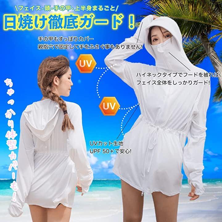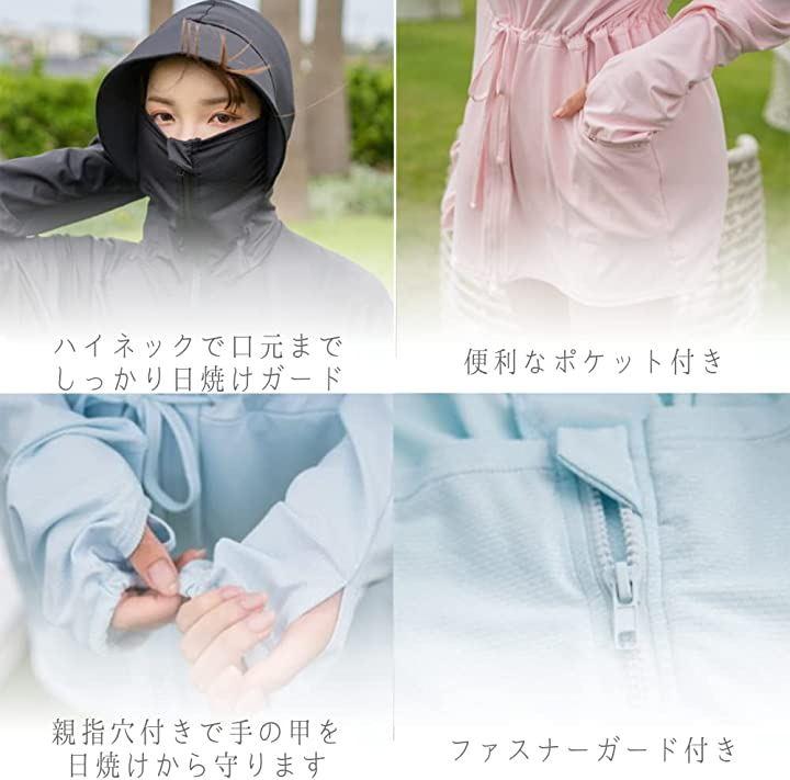 ハイネック+フード付きでお顔を紫外線からしっかりガードします。