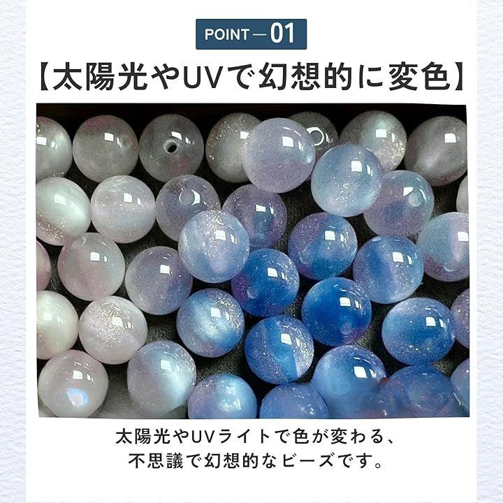 「太陽光やUVで幻想的に変色」太陽光やUVライトで色が変わる、不思議で幻想的なビーズです。
