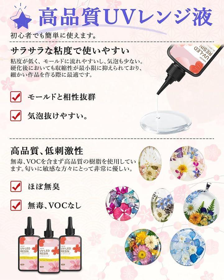 「UV-LEDランプ対応 & 急速硬化」UVレジン液はUVランプやUV-LEDランプで硬化できます。
