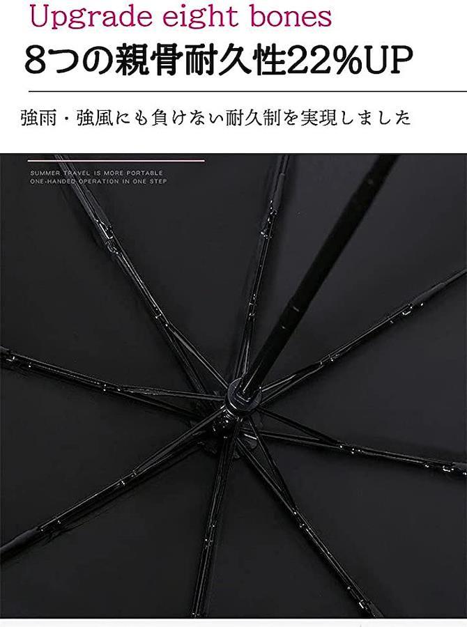 ・「強耐風8本骨折りたたみ傘」従来の親骨より22%耐量UP シンプルでコンパクトばデザインながら、強雨や強風にも対応可能です。