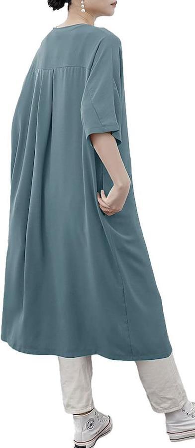 深めのVネックが抜け感とデコルテを綺麗に見せてくれて幅のある5分袖が二の腕をゆったりカバー。