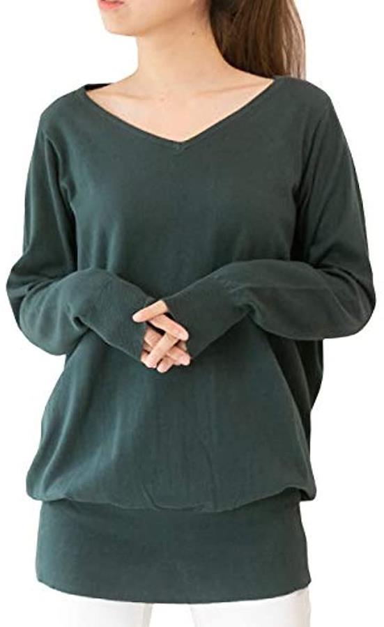 薄手過ぎず、厚手過ぎない程よい厚みだから、スプリングニットとして「ちょうどよい」トップスです。