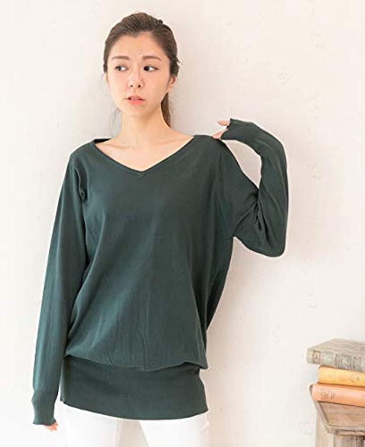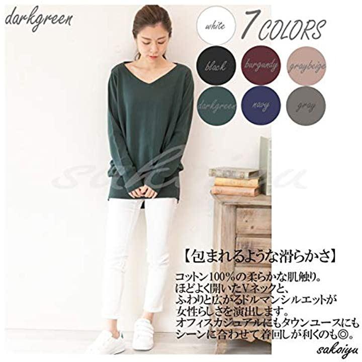 コットン100%の柔らかな肌触りで着心地・程よく開いたVネックと、ふわりと広がるドルマン・シルエットが、リラックス感がありながらもフェミニンな女性らしく、春ニットとしても活躍します。