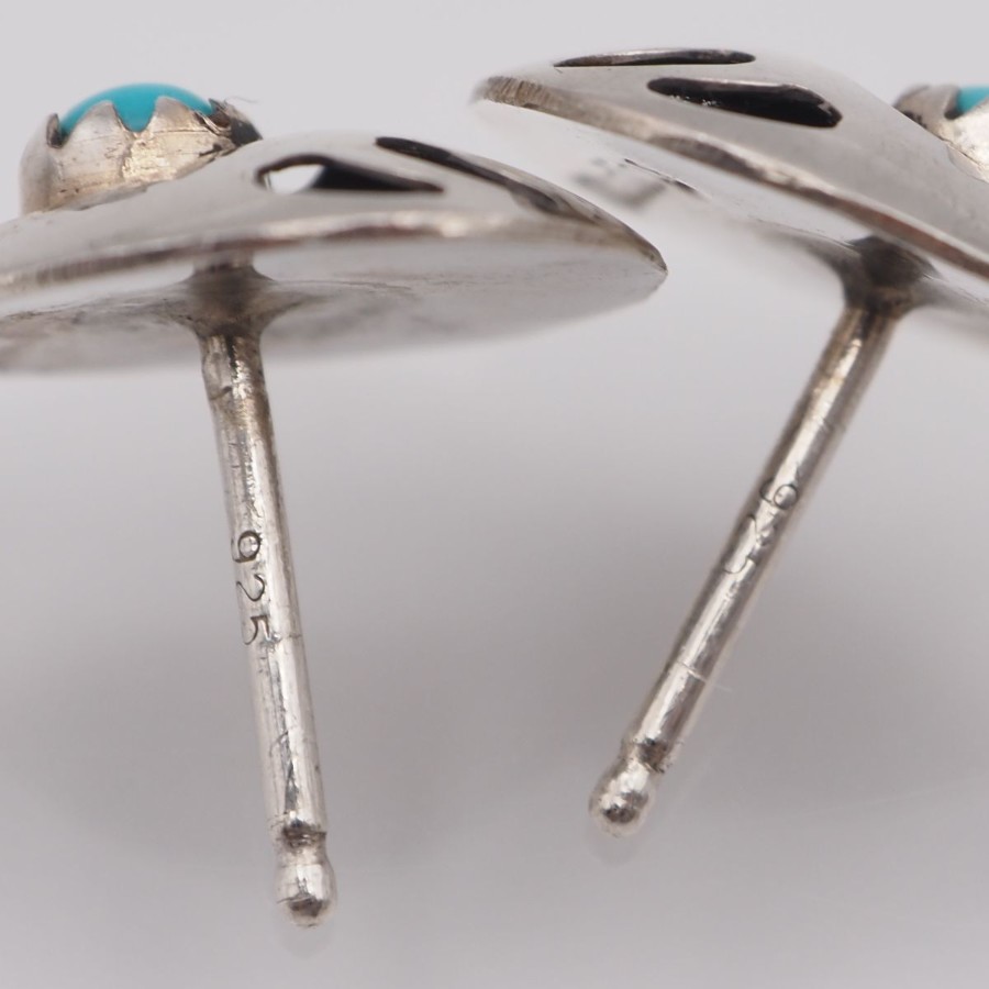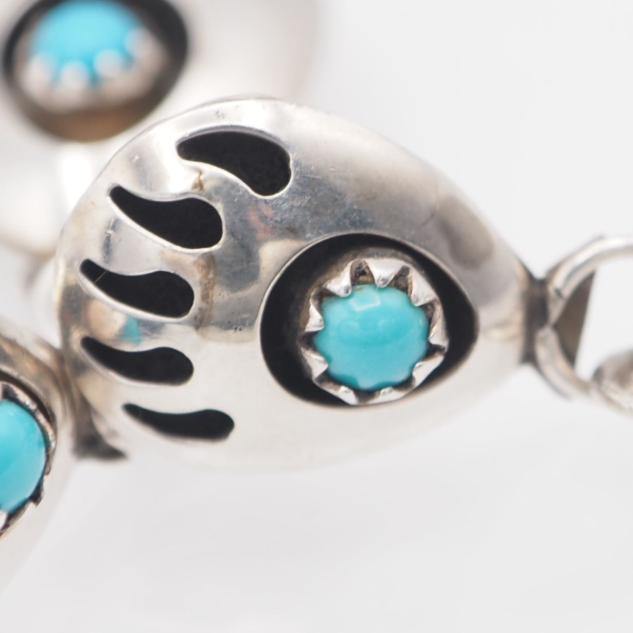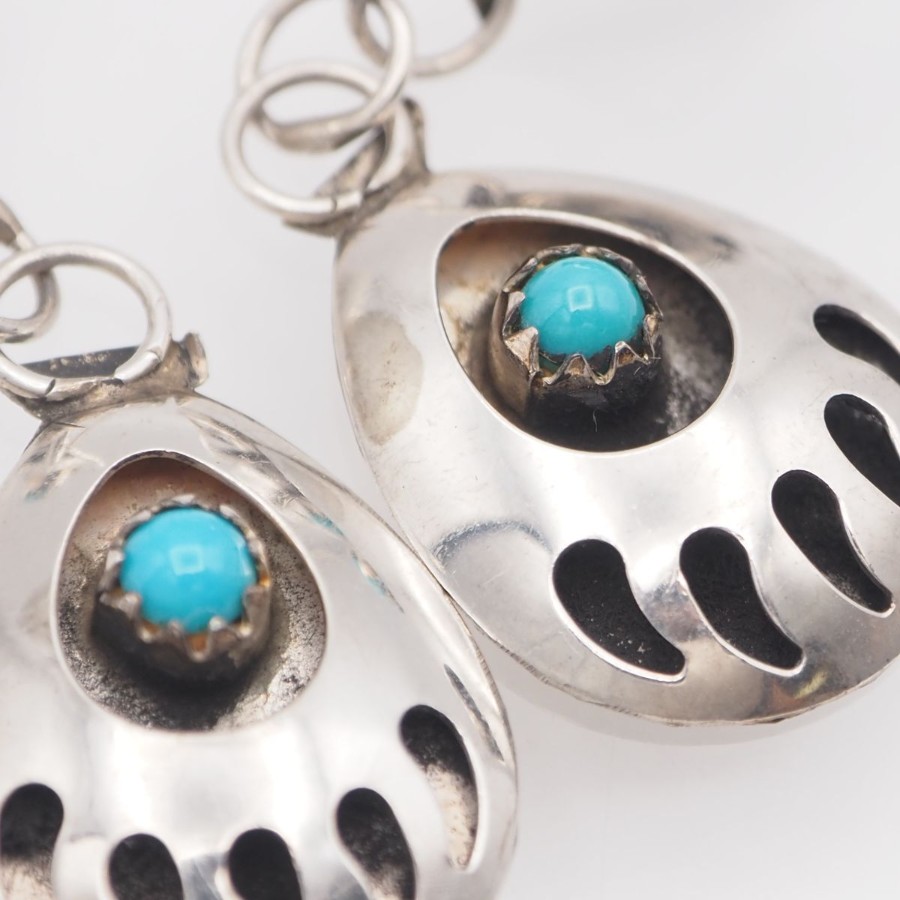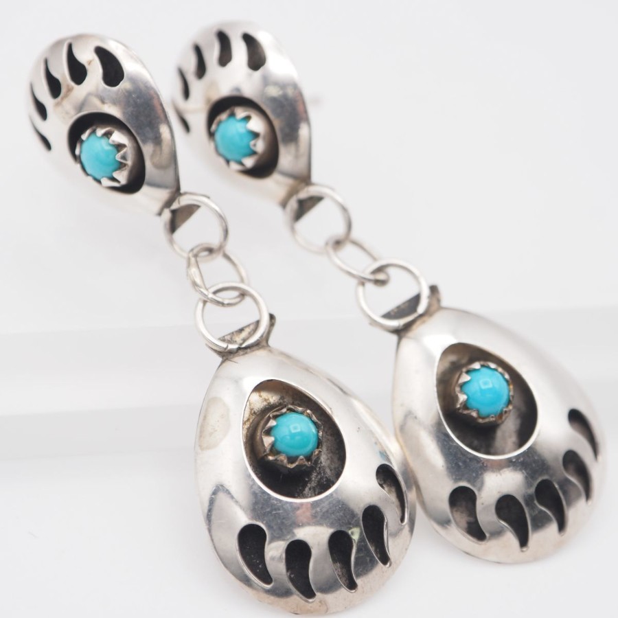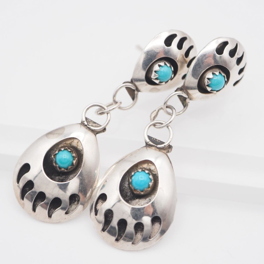V896 ヴィンテージ STERLING刻印 ピアス ターコイズ風 ベアパウ デザイン シルバー インディアンジュエリー