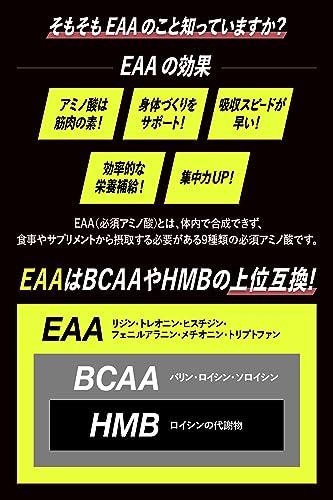 ?【カラダ作りのプロ監修 配合比率にこだわったEAA】体内では作り出すことができない9種類の必須アミノ酸にβアラニンを加えたEAAパウダー。配合比が固定されてしまうオールインワンタイプではなく、カラダ作りに最低限必要なアミノ酸9種以外はご自身のカラダに合わせて必要量を摂取してほしい願いを込めて、「あえて余計な成分を入れない」メジャーリーガー多数指導のトレーナー界のレジェンド山本義徳完全監修のEAAです。 ?【バルクアップサポート成分 β-アラニンとは?】継続的な運動パフォーマンスのサポートをする「カルノシン」の元になる、トレーニングに役立つ非必須アミノ酸であるβアラニンを3000㎎/食配合! ?【濃縮された果汁感とほどよい甘酸っぱさ!パイナップル風味】アミノ酸独自の苦みを最小限に抑え、スポーツドリンク感覚で飲める味にこだわりました。フレーバーは全部で6種類(シトラス、パイナップル、コーラ、青りんご、ライチ、スポーツドリンク)!毎日美味しく飲み続けていただくために味へのこだわりを追求し、2023年8月リニューアル時のアンケートで98.54%が美味しいと回答! ?【黄金律で配合した成分(1食(25g))】ロイシン5500mg、イソロイシン1500mg、バリン2000mg、トレオニン1000mg、リシン2500mg、メチオニン500mg、ヒスチジン500mg、フェニルアラニン1000mg、トリプトファン150mg (栄養成分表示):エネルギー 96.50kcal たんぱく質 17.85g 脂質 0g 炭水化物 6.30g 食塩相当量 0.006g ?【飲み方】付属のスプーン2杯(約25g)程度を700?1000mlの冷たい水などに溶かしてお召し上がりください。トレーニング中のドリンクとしておすすめです!※運動時のコンディション維持に役立つと今話題の非必須アミノ酸 ベータアラニン配合。「アラニンフラッシュ」と呼ばれる全身の”ピリピリ感”でパワーを体感することができます。健康上の問題はなく時間の経過とともに治まります。ピリピリ感が気になる方は、少量ずつ時間を置いてお飲みいただくことをおすすめします。