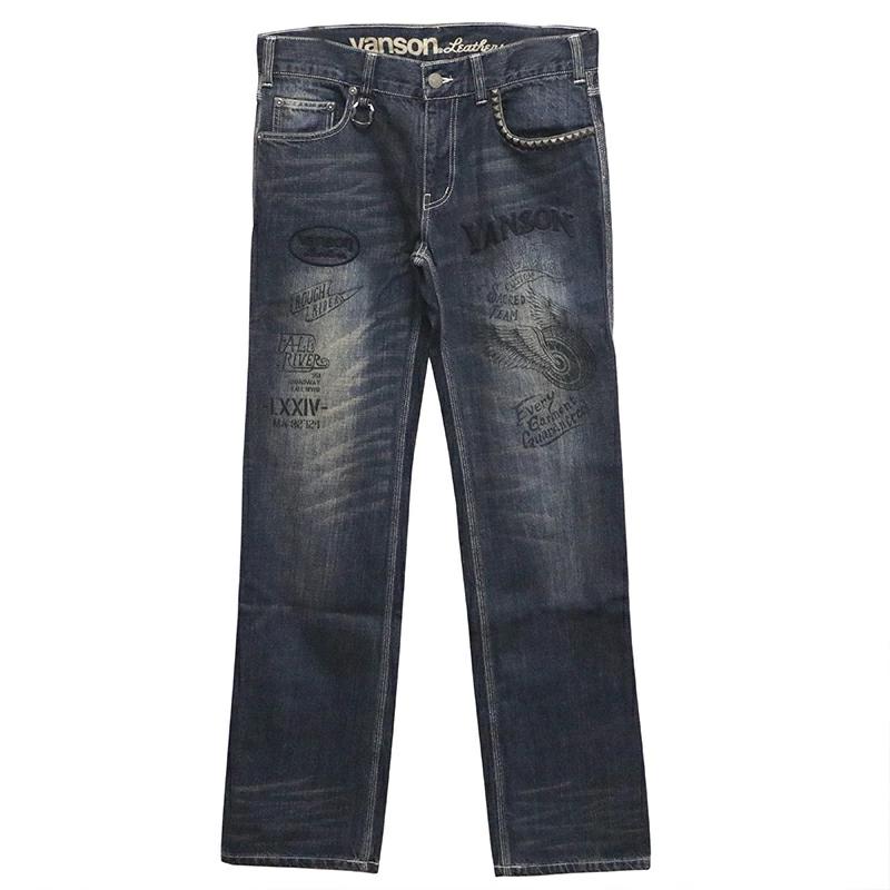 VANSON フライングスター デニム パンツ ( SP-B-33 ) バンソン デニム ジーンズ デニムパンツ スタッズ プリントロゴ入り Dカン 付き デニム 英字ロゴ