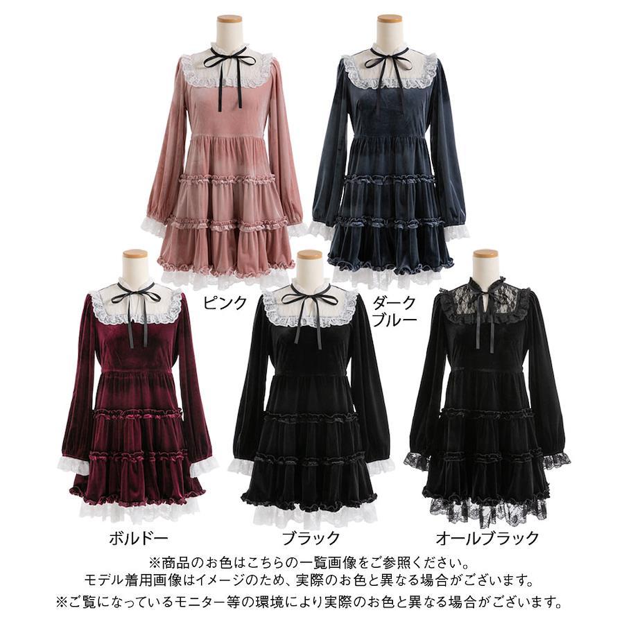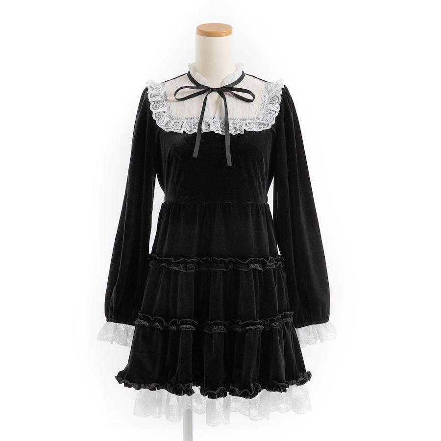 シーズンムード高まるベロア生地が高見えして、ヨークのレースやフリルが上品でクラシカルなデザイン。