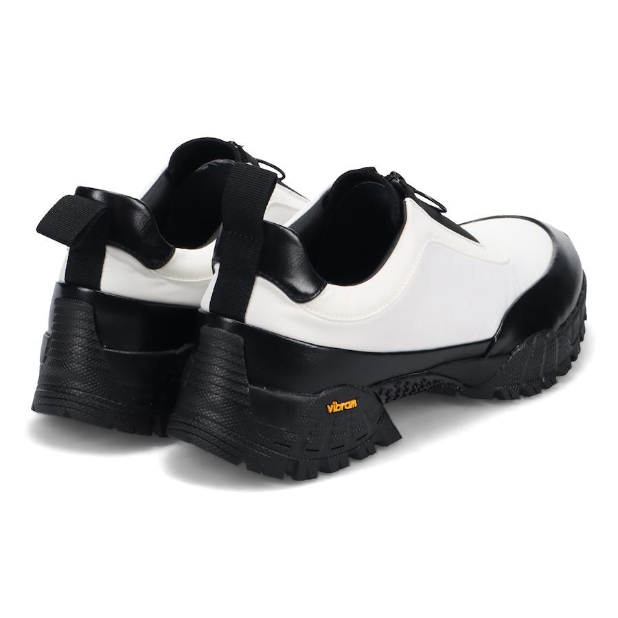センタージップスニーカー 【素材】 耐久撥水、撥油性、防汚に優れたポリエステル製のテフロン素材と人工皮革を使用。 【デザイン】 ループ型のセンタージップを使用したハイブリットスニーカー。生活撥水を持ち合わせながらスタイリッシュなデザインであり、VIBRAMソールのメガグリップのコンパウンドで耐久性と防滑性にも優れています。 ライニングには高機能マイクロファイバーを使用し吸汗性能・防臭のパフォーマンスに優れています。 【サイズ】 ※普段通常の革靴で25.5cm、スニーカーで26.5-27.0cmを着用するスタッフで<41/25.5cm>でちょうどよかったです。 ※サイズ感は、個人差がございますのであくまで参考程度にお考え下さい。 ■ブランド:whoop'-de-doo' destruction ■カラー:ブラック、カーキ、ホワイト ■アッパー素材:生地/人工皮革 ■底材:ラバー(ヴィブラム社製) ■ヒール:約4.0cm ■ソール:約2.5cm ■重さ(片足):約393g ■製法:セメント ■中国製 *上記は全て25.5cmで計測した数値です。 *多少の誤差が生じる場合がございますので予めご了承下さい。 whoop de doo co.,ltd whoop'-de-doo' フープディドゥ |