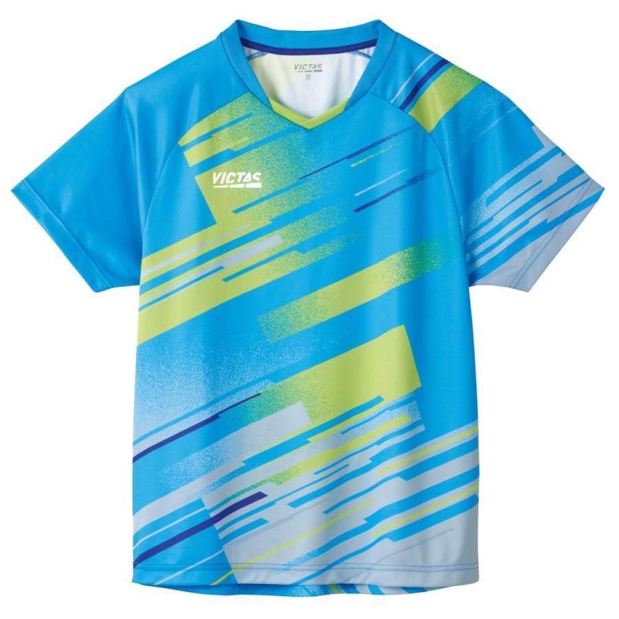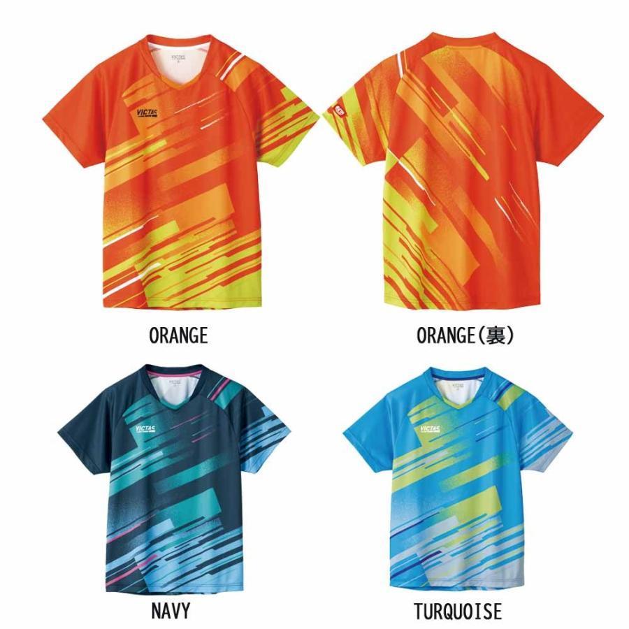 斜めにはしるエネルギッシュなグラフィックをポップに表現したデザインです。スタイリッシュなNV、クリアーなOR,クールなTQからチョイスしてください。肌触りがよい素材を使用したゲームシャツです。