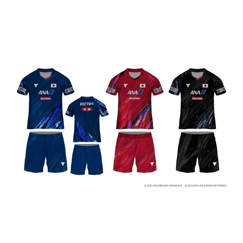 2024年度男子日本代表モデル。世界で活躍する現代アーティスト「山口歴」氏とのコラボウエア。VICTASのために描き起こした「山口歴」氏のダイナミックなグラフィックを組み込んだデザインとなっているゲームシャツです。