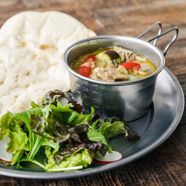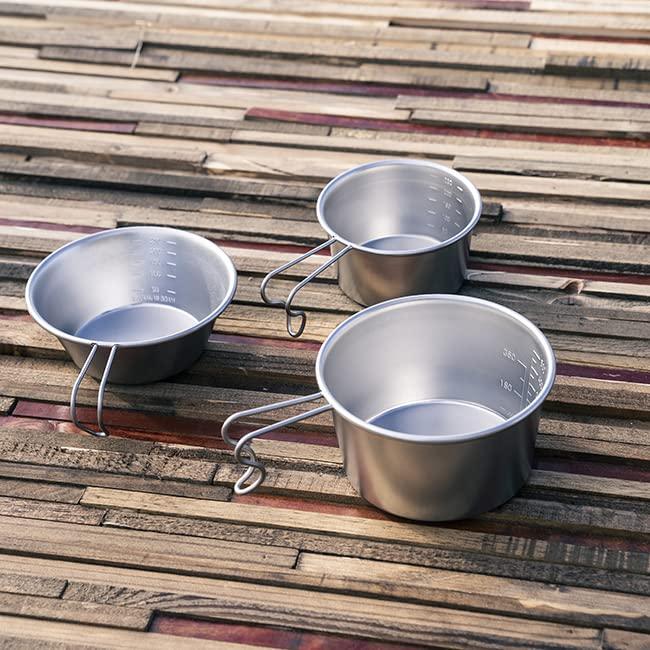 アウトドアで大活躍のシェラカップ。目盛付きなので、調理の際の計量カップとしても使えるだけでなく、コンパクトなサイズはスープカップやコーヒーカップ、取り分け皿など多用途に使えます。もちろんスタッキングも可能です! ステンレスにエイジング加工を施した独特な味わいはインダストリアルな雰囲気漂い、渋く格好いい。気取らずシンプル、それでいてスタイリッシュにアウトドア空間を演出します。使い込むほどにいろんな表情を見せ経年変化を楽しめるのも魅力のひとつ。洗いやすくお手入れも簡単、食器洗浄器にも対応しています。