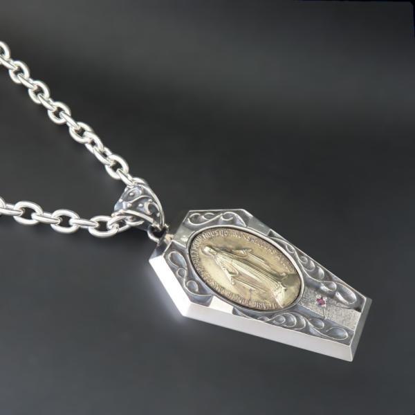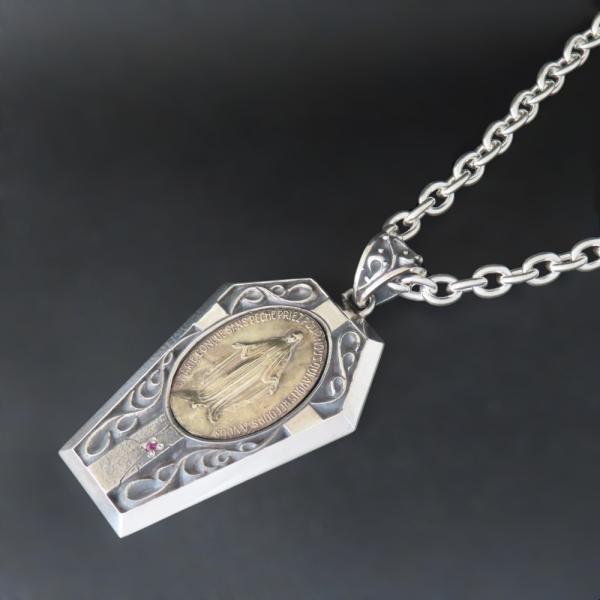 【モチーフ】 聖母マリア、マリア、十字架、クロス、唐草模様、アラベスク ◆モチーフ意味 聖母マリアのメダイは持つ人に奇跡の恵みがもたらされると言われています。 十字架といえばイエス・キリスト。 イエス・キリストは、人類を罪から救うため、十字架に磔刑に処されたといわれています。 そのため、十字架はキリスト教における救いのシンボルであり、特別な意味を持つ尊重されるべきしるしでもあるのです。 このような背景があるため、クロスは愛、救い、永遠、解放、生命力、復活など、多様な意味を持ちます。 また、クロスには守護の要素が強く、魔除けの効果があり、天からの加護や災いを跳ね返してくれる力が高まるともいわれています。 唐草模様は葉や茎、植物が伸びたり絡んだりした植物の模様でツタは生命力が強く、途切れる事なく伸びていく事から「繁栄・長寿」の意味があります。 生命力、永遠に力強く伸びつづけるという、縁起の良いイメージとされてきました。 ◆商品名 聖母マリアネックレス(PDT-147) ◆素材 シルバー925 スターリングシルバー × 真鍮 ブラス ◆ペンダント寸法 縦72.5mm×横37.5mm ◆ストーン 直径2.0mm 下記の中からお好みの天然石・誕生石をお付け致します。 ・ガーネット ・ロードライトガーネット ・アメジスト ・アクアマリン ・ブラックダイヤモンド ・エメラルド ・ブルームーンストーン ・ルビー ・ペリドット ・サファイア ・アイオライト ・ピンクトルマリン ・シトリン ・ブルートパーズ ・タンザナイト ・オニキス ・ラピスラズリ ・ターコイズ ◆チェーン長さ 35~60cmの中からお好みの長さをお選び下さい。 6.0mmシルバー925小豆チェーン ◆付属品 ジュエリーBOX、ショップ袋、品質保証書 *プレゼント梱包出来ます ◆実店舗 Grand Galleria(グランドガレリア) JR帯広駅より徒歩5分の場所にある2012年オープンのフラッグシップショップ。 ジュエリー工房を併設し、常駐する職人自らと打ち合わせも可能なため、修理や加工、お客様のご希望に沿ったジュエリーもお作りすることが可能です。 ◆オススメ使用シーン ・様々な贈り物に プレゼント 贈り物 誕生日 誕プレ 誕生日プレゼント バースデー バースデイ 御祝 御祝い お祝い 母の日 父の日 クリスマス クリスマスプレゼント Xmas 春夏秋冬 成人 成人式 卒業 卒業式 進学 就職 入学 金婚式 銀婚式 出産 結婚 開店 開業 定年退職 退職 移動 転勤 バレンタイン バレンタインデー バレンタインデイホワイトデー ホワイトデイ ごほうび ご褒美 御褒美 ・想いを込めて ありがとう 感謝 ごめんなさい 許して ごめんね よろしく おめでとう おめでとうございます 仲直り ・こんな方に 自分 彼女 彼氏 大切な人 大切な方 お父さん お父様 父親 親父 父 お母さん お母様 母親 母 兄弟 姉妹 子供 おばあちゃん 祖母 おじいちゃん 祖父 奥さん 妻 旦那 旦那さん 先生 生徒 職場 先輩 後輩 上司 部下 同僚 友達 友人
