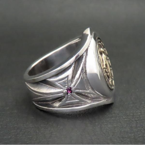 【モチーフ】 聖母マリア、マリア、クロス、十字架 ◆モチーフ意味 聖母マリアのメダイは持つ人に奇跡の恵みがもたらされると言われています。 十字架といえばイエス・キリスト。 イエス・キリストは、人類を罪から救うため、十字架に磔刑に処されたといわれています。 そのため、十字架はキリスト教における救いのシンボルであり、特別な意味を持つ尊重されるべきしるしでもあるのです。 このような背景があるため、クロスは愛、救い、永遠、解放、生命力、復活など、多様な意味を持ちます。 また、クロスには守護の要素が強く、魔除けの効果があり、天からの加護や災いを跳ね返してくれる力が高まるともいわれています。 ◆商品名 聖母マリアリング(RNG-62) ◆素材 シルバー925 スターリングシルバー × 真鍮 ブラス ◆リング幅 最大23mm、最小9mm ◆ストーン 直径2.0mm 下記の中からお好みの天然石・誕生石をお付け致します。 ・ガーネット ・ロードライトガーネット ・アメジスト ・アクアマリン ・ブラックダイヤモンド ・エメラルド ・ブルームーンストーン ・ルビー ・ペリドット ・サファイア ・アイオライト ・ピンクトルマリン ・シトリン ・ブルートパーズ ・タンザナイト ・オニキス ・ラピスラズリ ・ターコイズ ◆リングサイズ 15号~30号 ◆付属品 ジュエリーBOX、ショップ袋、品質保証書 *プレゼント梱包出来ます ◆実店舗 Grand Galleria(グランドガレリア) JR帯広駅より徒歩5分の場所にある2012年オープンのフラッグシップショップ。 ジュエリー工房を併設し、常駐する職人自らと打ち合わせも可能なため、修理や加工、お客様のご希望に沿ったジュエリーもお作りすることが可能です。 ◆オススメ使用シーン ・様々な贈り物に プレゼント 贈り物 誕生日 誕プレ 誕生日プレゼント バースデー バースデイ 御祝 御祝い お祝い 母の日 父の日 クリスマス クリスマスプレゼント Xmas 春夏秋冬 成人 成人式 卒業 卒業式 進学 就職 入学 金婚式 銀婚式 出産 結婚 開店 開業 定年退職 退職 移動 転勤 バレンタイン バレンタインデー バレンタインデイホワイトデー ホワイトデイ ごほうび ご褒美 御褒美 ・想いを込めて ありがとう 感謝 ごめんなさい 許して ごめんね よろしく おめでとう おめでとうございます 仲直り