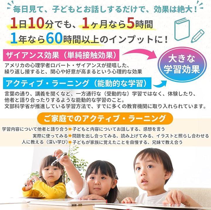 子供と一緒に大人も練習してみよう。プチバイリンガルで、英語の読み方もカタカナで記載。