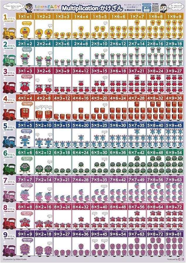 可愛いモンスターと九九を学ぼう。かけ算の仕組みがイラストで、目で見てわかる。