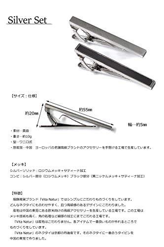 ?【サイズ】約55mm×20mm×幅5mm 【重さ】10g 【型】ワニ口式 【素材】真鍮 【加工】ロジウムメッキ、ニッケルメッキ、サティーナ(つや消し/マット)加工 シンプルなものづくりにこだわる [Vita Natur] から、どんなネクタイにも合わせやすいネクタイピンをご提案いたします。?【ネクタイに合わせやすいネクタイピン】ブラックとシルバー、2色セットのネクタイピンをご用意いたしました。シンプルな無地のデザインなので、無地やストライプ、柄入りなど、どんなネクタイにもお使いいただけます。素材は高級感のある真鍮を使用。シルバーの変色に強いロジウムメッキを使用し、おしゃれなサティーナ(つや消し/マット)加工を施しています。シンプルかつシックで、高級感のあるデザインのネクタイピンに仕上げました。?【どんな場面でもお使いいただけます】シンプルで無地のデザインなので、場面や場所を選ばずお使いいただけます。おしゃれなトラッドスタイル・モードスタイルはもちろん、結婚式の二次会やパーティーなどでも大活躍。シンプルなデザインで、ビジネススーツはもちろん、喪服や礼服にも合わせやすく、冠婚葬祭にもお使いいただけます。?【誕生日や父の日のプレゼントにも】ネクタイに合わせやすい真鍮製、おしゃれなサティーナ(つや消し/マット)加工のネクタイピンです。誕生日やクリスマス、入学式や卒業式のお祝い、父の日や日頃の感謝を伝えるプレゼントとして。ネクタイとネクタイピンセットでのプレゼントにも最適です。?【専用ギフトbox付】Vita Natur(ヴィタ・ナトゥール)の商品には、オリジナルのブランドギフトボックスが付いています(一部商品は除く)。マフラー・ストール・ネクタイ・ベルトそれぞれに専用の箱をご準備しておりますので、セットでのプレゼントもご検討ください。