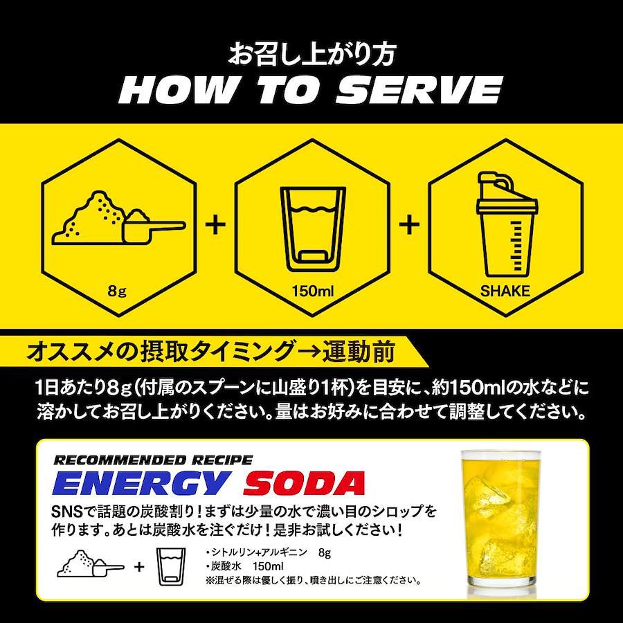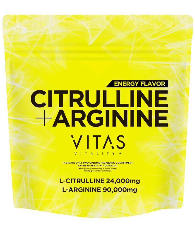 VITAS(バイタス)シトルリン×アルギニンパウダー 美味しさと配合量にこだわったエナジーパウダーが出来ました。体にとって重要な働きをする非必須アミノ酸「シトルリン」と「アルギニン」を配合。運動前の摂取でパフォーマンス向上をサポート。 【圧倒的なパフォーマンス】シトルリン24,000mg×アルギニン90,000mg配合。更に男性に嬉しいブラックジンジャーエキスなどを配合したエナジーパウダー。エナジー&シナジー処方で、ハイパフォーマンスを実現。 【商品仕様】240g/30日分 【製造工場】国内生産/GMP認定工場にて製造し、品質管理を徹底しております。 日々の商品改良につき、原料の一部やパッケージは予告なく変更になる可能性がございます。 【お召し上がり方】1日あたり付属のスプーンで山盛り1杯(約8g)を目安に150mlの水などに溶かしてお召し上がりください。