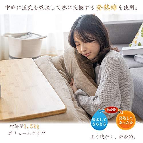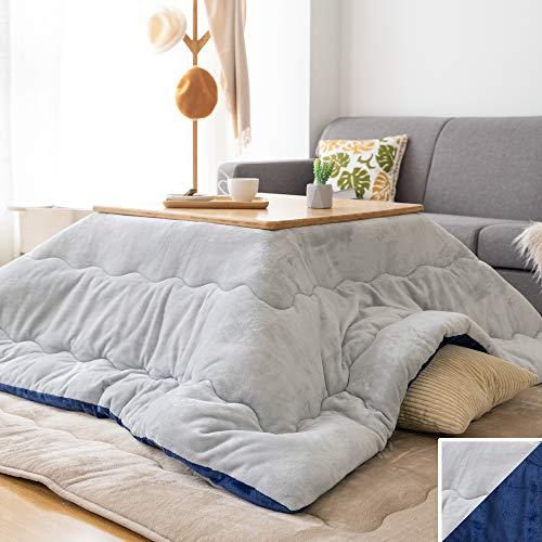 【フランネルの肌触り】表地には柔らかく細い繊維が起毛しているフランネル素材を使用。触れるとしっとりなめらかで柔軟性があり、保温性も抜群です。【両面使える】表も裏もなめらかフランネルのリバーシブル仕様です。お部屋の雰囲気や気分でお気軽に使い分けしていただけます。【丸洗いOK】ご家庭でも簡単にお洗濯が可能です。いつも清潔でふわふわな使い心地をお楽しみ下さい。 ※1.洗濯機で洗濯や脱水する場合、ネットで使ってください。2.乾燥機をご使わないでください。3.洗濯の際、変色や脱色のおそれがありますので、塩素系漂白剤のご使用はお避け下さい。【商品仕様】こたつ掛け布団単品 サイズ:約185×185cm (対応こたつ台:70-80cm四方)素材:側地:ポリエステル100%(目付け量190g/m?の手触りの良いフランネル生地) 中綿:ポリエステル70% レーヨン30% 発熱綿約1.5kg ※こたつ台/こたつ敷き布団は商品に含まれません。【安心保証】万が一商品に不具合がある場合、商品自体の問題がある場合(初期不良など)は、弊社にご連絡いただければ迅速に対応いたします。1年間の品質保証があるから、安心してお買い求め頂けます。 【圧縮梱包】商品は圧縮された状態で梱包されています。ご使用の前に風通しのいい場所で陰干ししていただくと、よりふんわりとしたお布団に仕上がります。