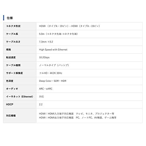 ケーブル長:5.0mコネクタ:金メッキ仕様ケーブル:3重構造【シールド】カラー:黒ケーブル/コネクタ:ノイズカット・EMI対策 シールド強化品(OEM仕様同等品)High Speed with Ethernet(1080p/3D/4×2/DeepColor/HEC/ARC 対応)