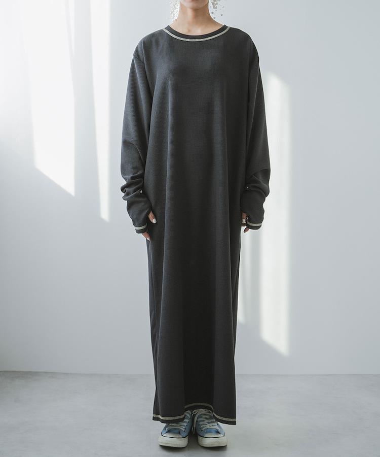 体型を拾わないルーズなシルエットで、ゆったり着れる1着です。