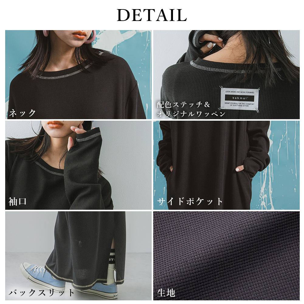 体型を拾わないルーズなシルエットで、ゆったり着れる1着です。