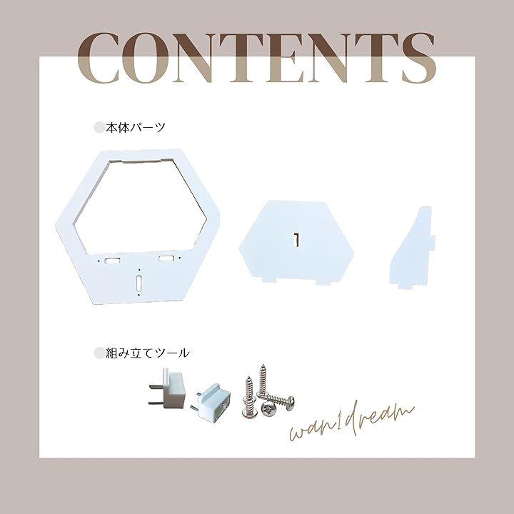 セット内容:組み立てパーツx3枚 壁掛けピンx2本 ネジセット