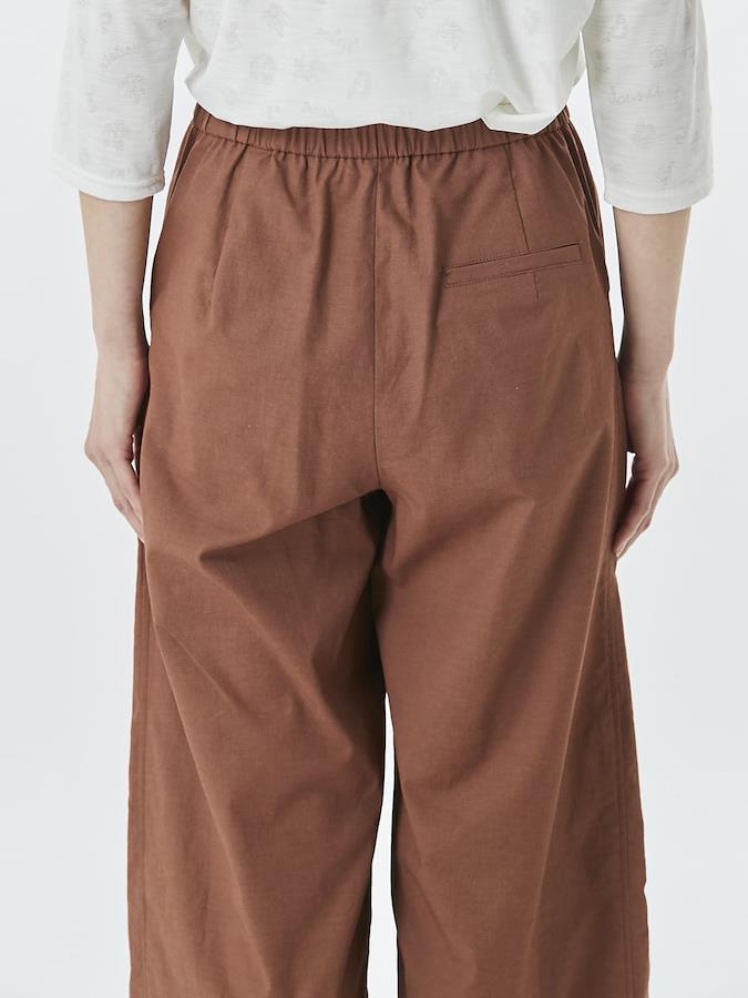 麻が低混率にでありながら、高混率の表情が出ています。シワになり難く、清涼感と透け防止を兼ね備えた素材です。 (size-40 ウエスト68cm ヒップ97cm 股上26cm 股下70cm) サイズは多少の個体差が生じる可能性があります