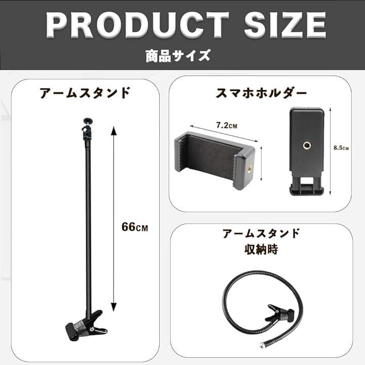 長さ66cmのフレキシブルアームを採用しており機器をお好きな高さ、角度に自由にセッティングすることができます。