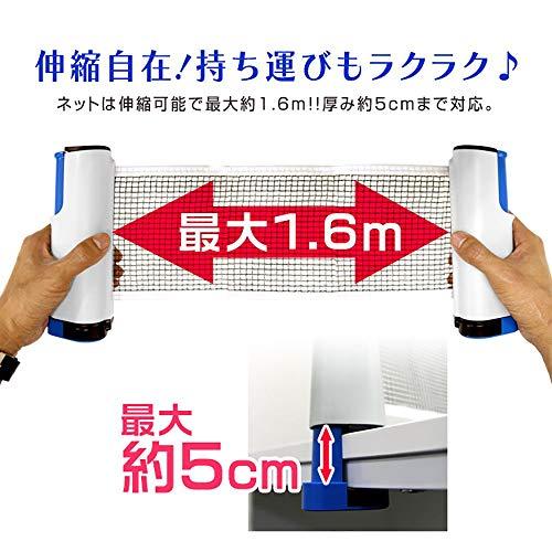 テーブルがあれば、どこでも楽しめるポータブル卓球セット!伸縮自在のネットで最大で160cmまで使用できます。ラケット・ボール付きでこれ一つですぐに遊べます。子ども会やホームパーティーで大活躍!コンパクトで持ち運びに便利です♪●商品仕様サイズ(約):幅140×奥行55×高さ200mm(ネット本体)※厚さ約5cmのテーブルまで対応重量(約):840g(パッケージ込)材質:ABS、PE、PP、木合板●商品内容ポータブルネットラケット×2ピンポン球●注意事項・当商品を使用した際に発生したトラブル、事故につきまして、当社は一切の責任を負いかねます。・当商品は入荷の時期によりカラー、仕様などが変更される場合があります。ご了承下さい。