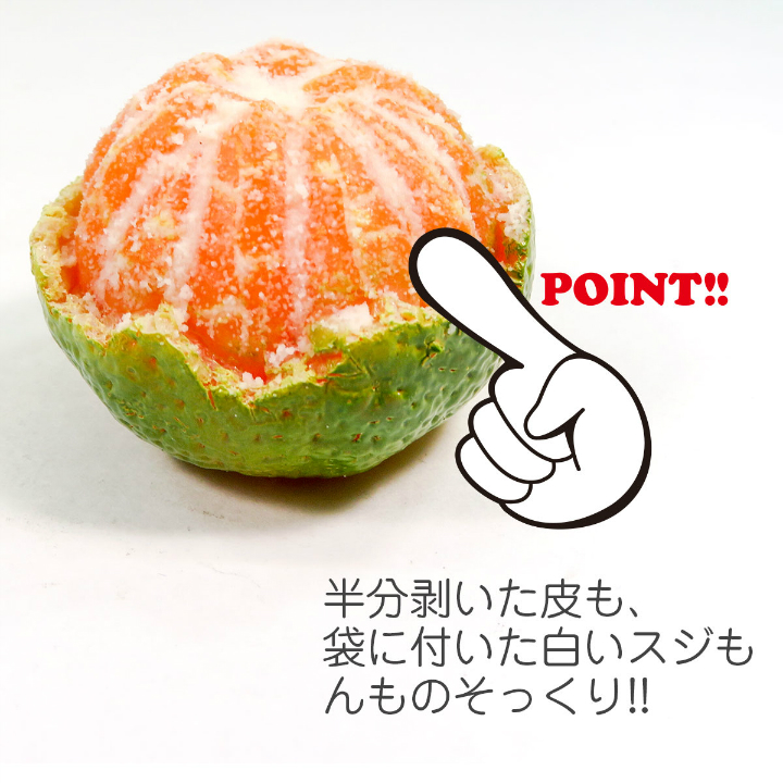 本物の青みかんそっくりに作られた食品サンプルのストラップです。