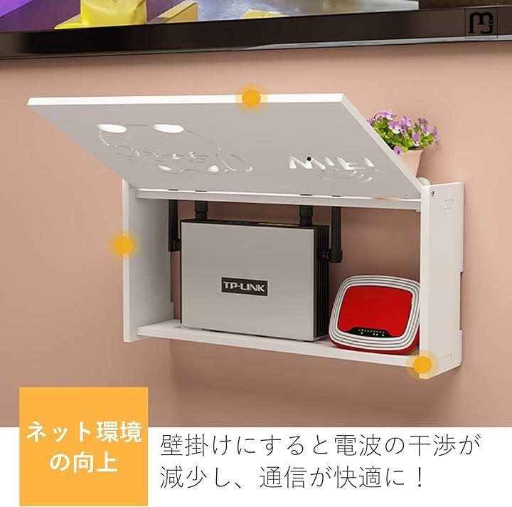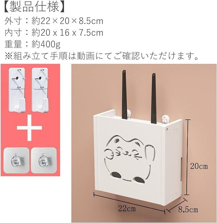 このWifi・ルーター配線収納ボックスは、壁掛けタイプ・組み立て式で、壁から出ている配線や無線LAN・ルーター、モデムなどのケーブルをまとめて収納して床から浮かせるためのボックスです。