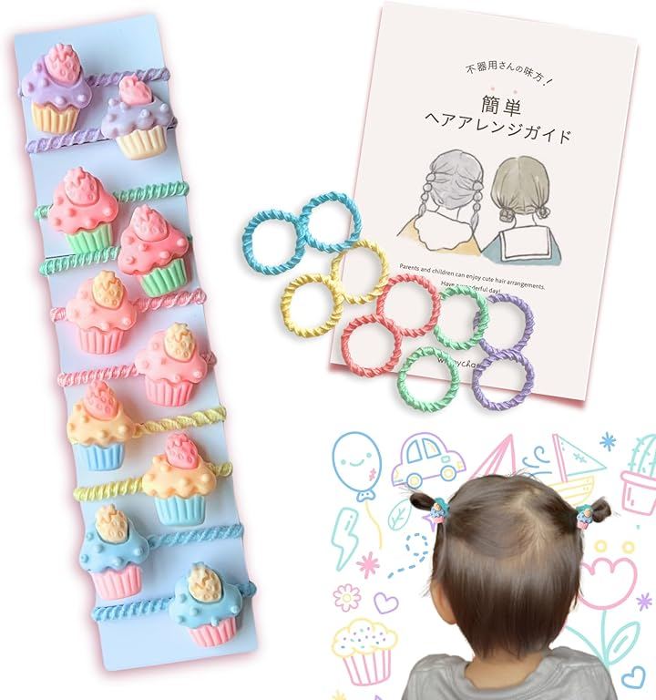 飾りつき子供 ヘアゴムが10個+シンプルな子供 ヘアゴムが10本でとっても使いやすい。 *シンプルな飾りなしの子供用ヘアゴムの色はランダムです。