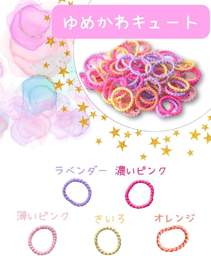 たくさん入ってお得なヘアゴム 子供がキラキラなヘアスタイルを楽しむことができます。