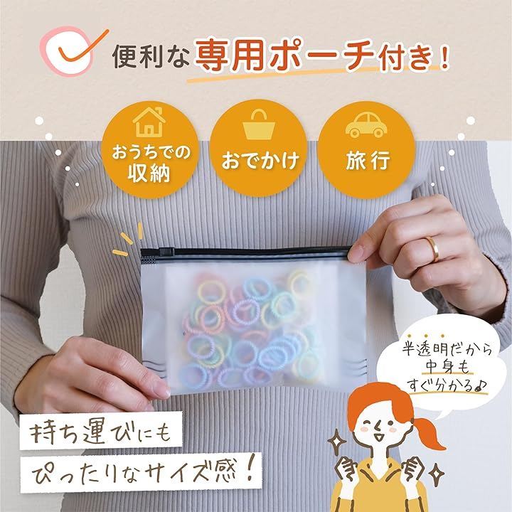 「大容量でコスパ〇」無くしても安心の大容量のキッズヘアゴム。 切れたり無くしたりしても安心。数が多すぎて邪魔になることもありません。小さなお子様の髪にぴったりな、やさしいヘアゴムです。