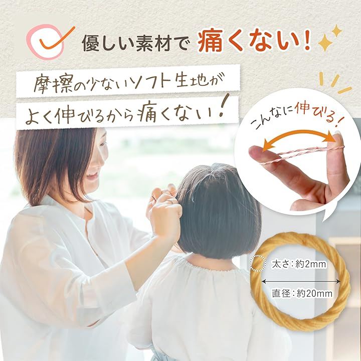 絡まりにくく、結んでも痛くなりにくい ので、髪を結ばれるのが苦手なお子様にもぴったりです。