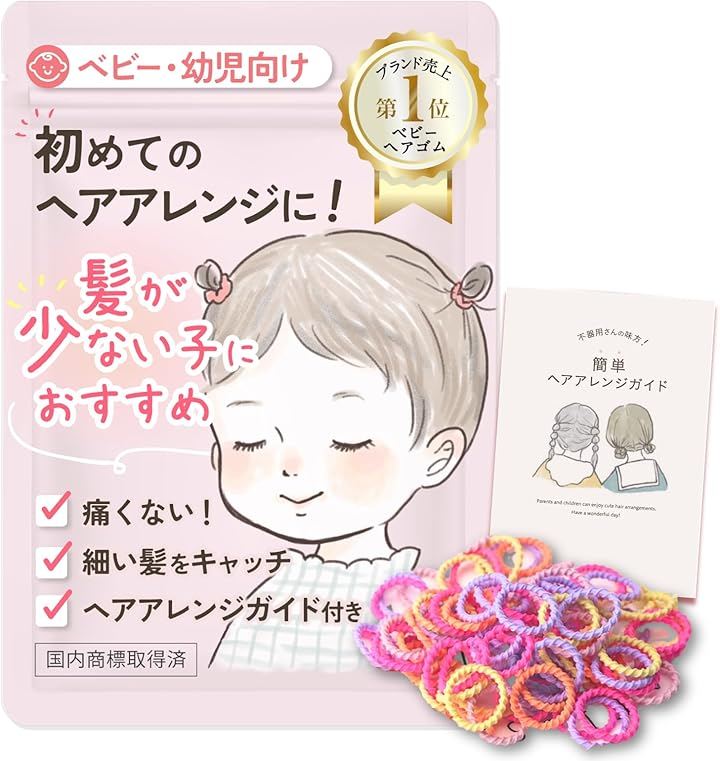 wippyperro 髪の少ない子供専用ヘアゴム ヘアアレンジ ガイド付 ベビー 髪ゴム 赤ちゃん 可愛い 痛くない 絡まない 保育園 薄毛