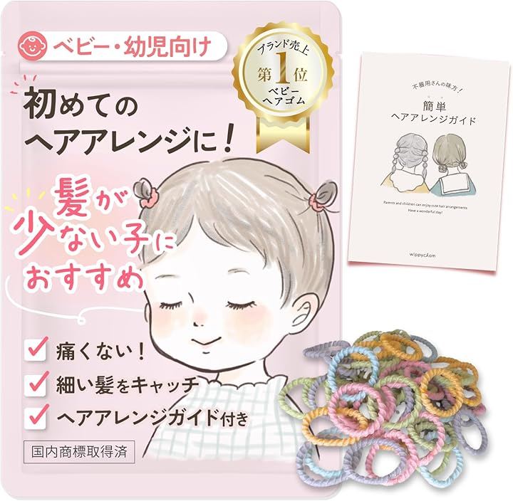 wippyperro 髪の少ない子供専用ヘアゴム ヘアアレンジ ガイド付 ベビー 髪ゴム 赤ちゃん 可愛い 痛くない 絡まない 保育園 薄毛