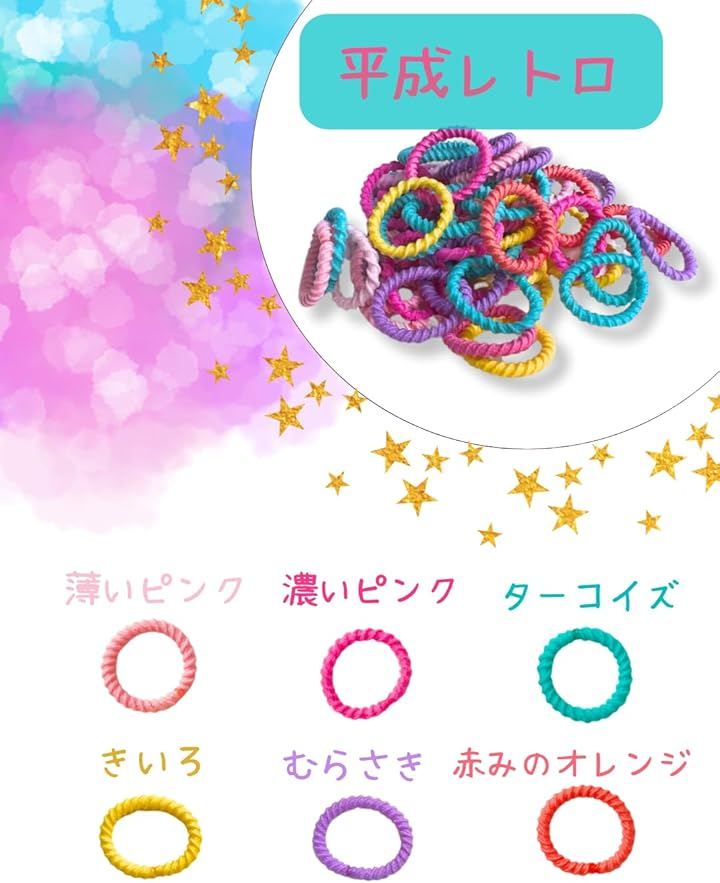 豊富はカラーでキラキラな毎日を楽しめること間違いなしのヘアゴム 子供達に大人気です。