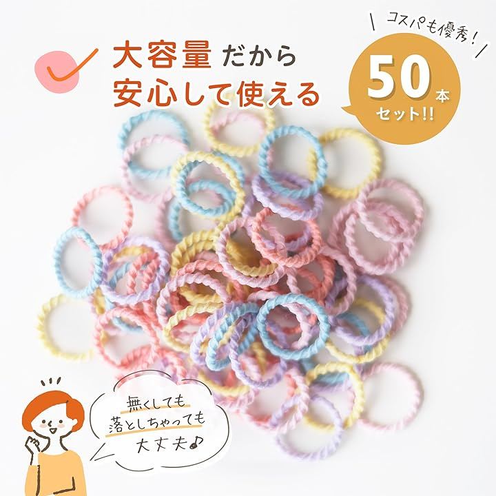 「大容量でコスパ〇」無くしても安心の大容量のキッズヘアゴム。 切れたり無くしたりしても安心。数が多すぎて邪魔になることもありません。小さなお子様の髪にぴったりな、やさしいヘアゴムです。
