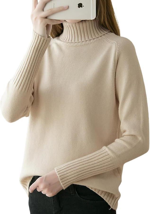 着るとすぐに体の体温がセーターに伝わり、暖かさで包まれるハイネックのセーター。