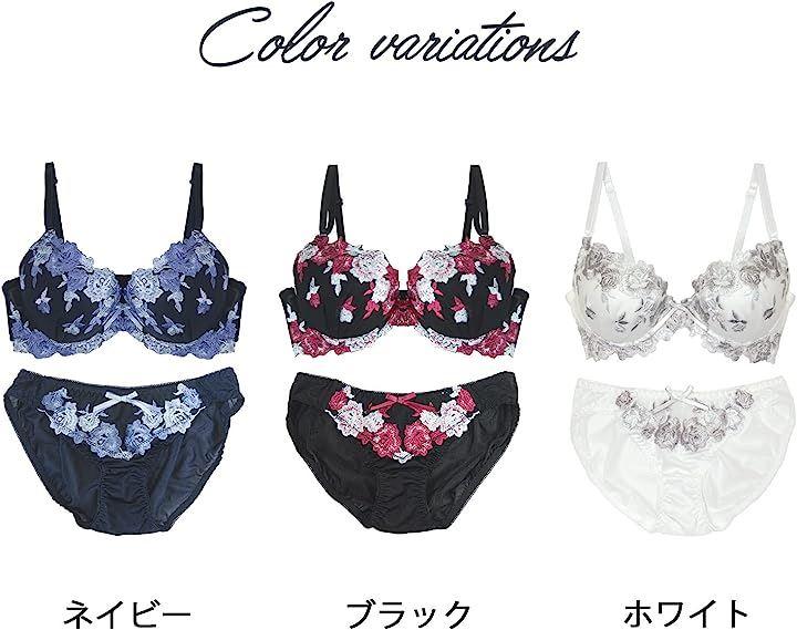 ブラジャー、ショーツ共に大胆に施された刺繍は着るだけで女性らしさをグッと引き出してくれるデザインとなっております。