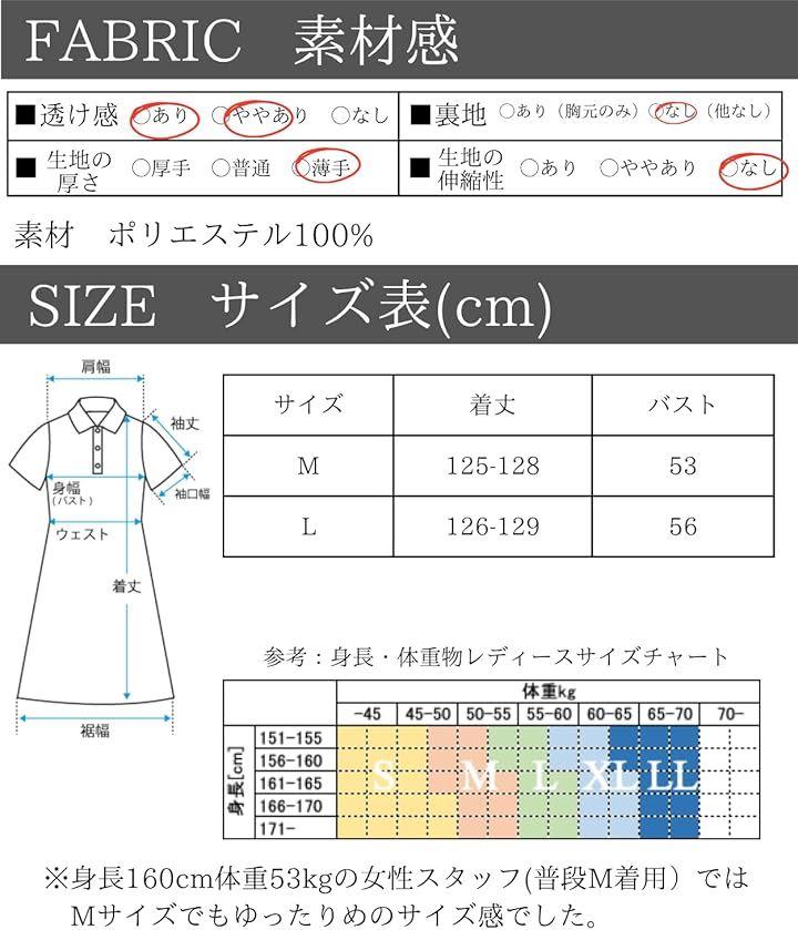 「サイズ(cm)」M 着丈125-128/バスト53/ L 着丈126-129/バスト56/