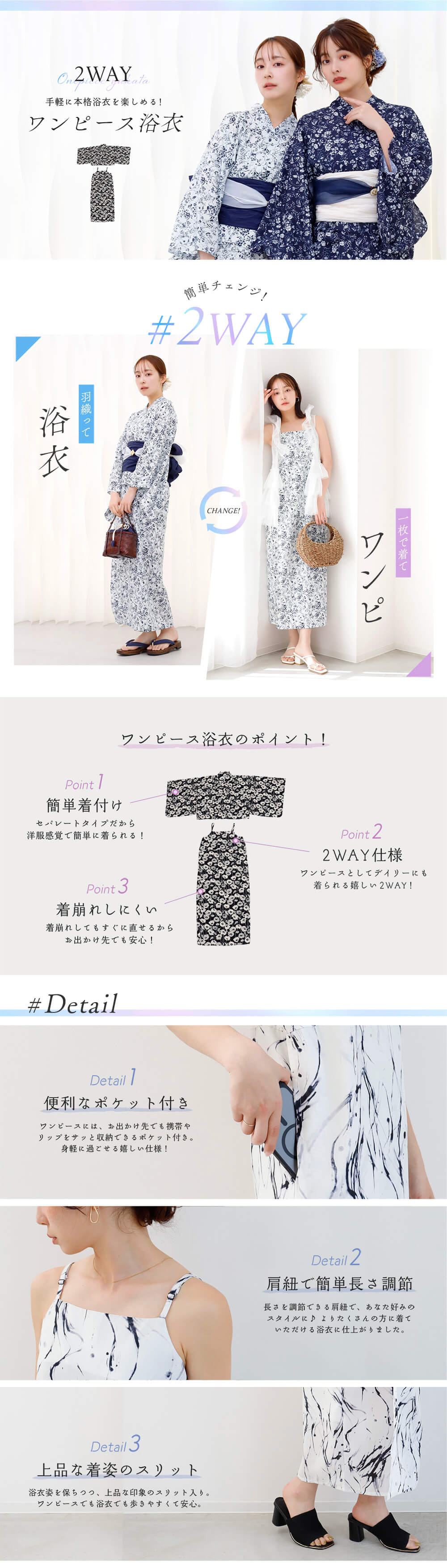 おしゃれを楽しみたいけど、着付けに自信がない…。そんな方にこそ選んでほしい、毎日使いたくなるワンピース浴衣です♪