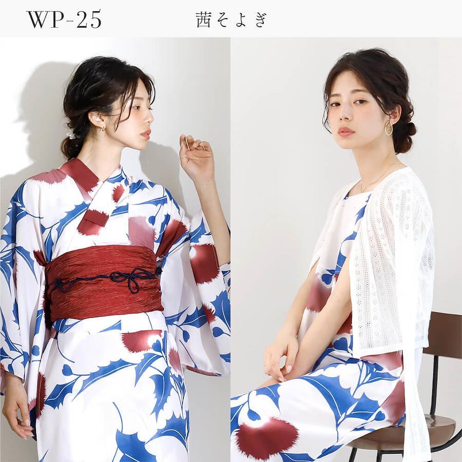 浴衣がもっと身近に、もっと簡単に楽しめる「ワンピース浴衣+しわ兵児帯」2点セットが登場!こちらはワンピース型のインナー浴衣と、羽織を重ねて帯を締めるだけの簡単仕様。着付けが苦手な方や、浴衣初心者の方にもおすすめです。ひとりでたった数分で着られるから、忙しい日でも安心。