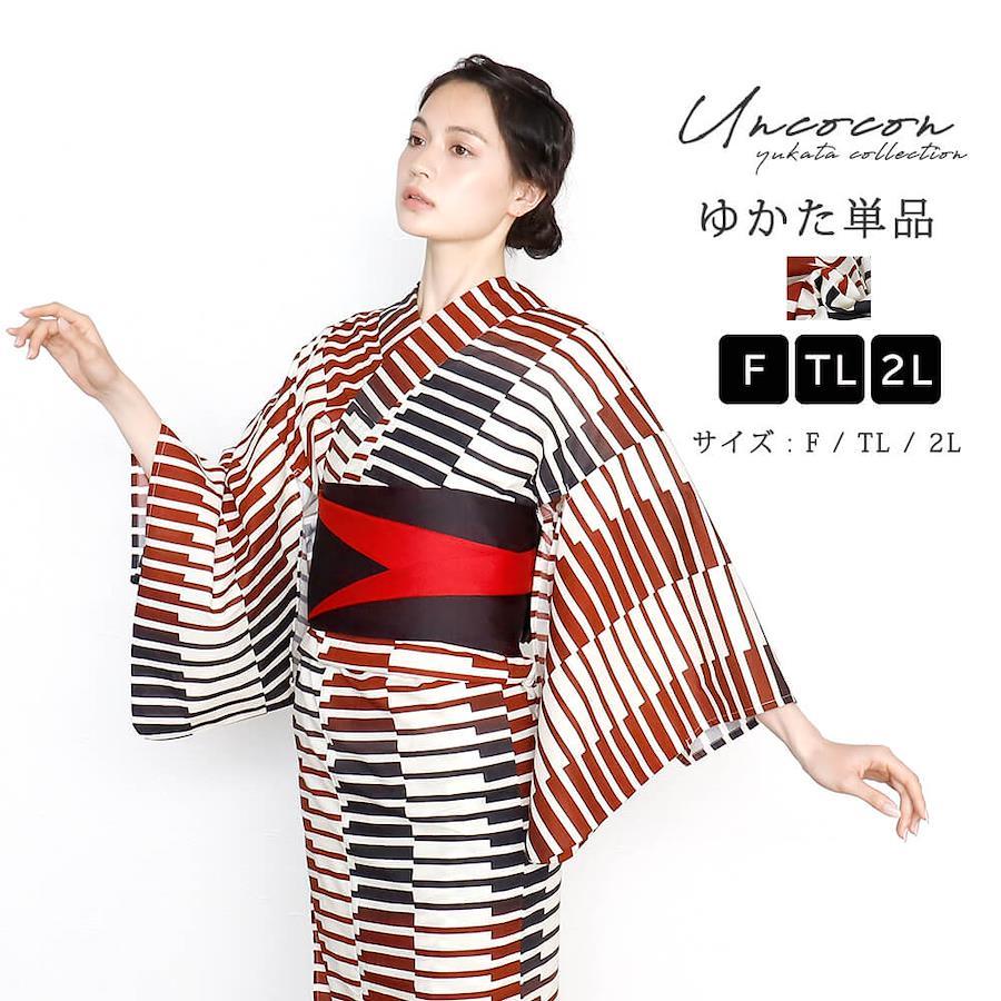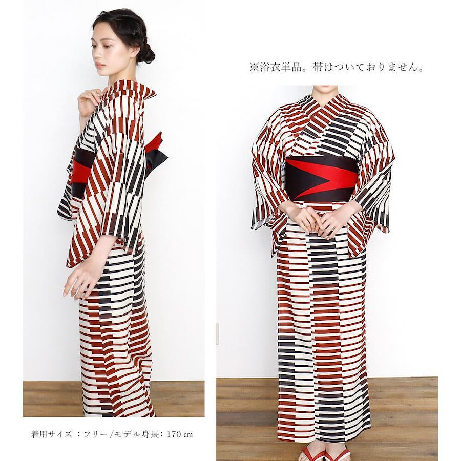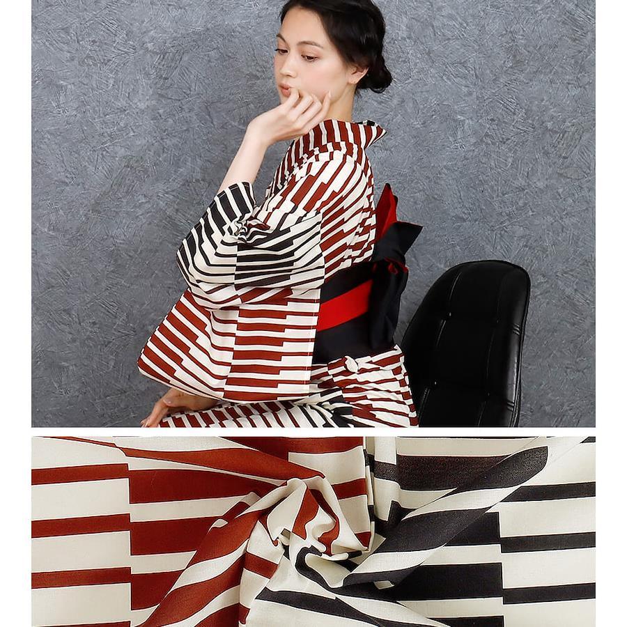 大胆で洗練されたストライプ柄が魅力の「レトロ縞」は、シンプルながらも存在感のあるデザインで、粋な浴衣スタイルを演出します。深みのある赤と黒の縞模様が、視覚的にもシャープな印象を与え、帯の合わせ方で印象を自由に変えることができます。